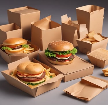 Our eco-friendly options include paper bags, burger boxes, and food trays made from sustainable materials.